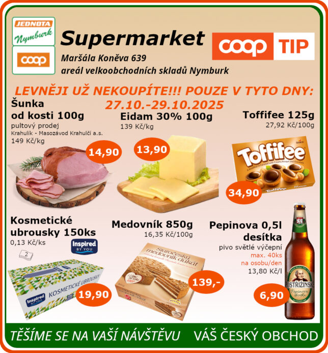 SUPERMARKET Maršála Koněva 639, Nymburk platnost od 27.10. do 29.10.2025 10.10.2025 / Renata Hervertová