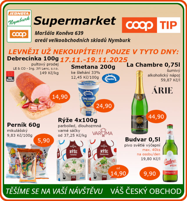SUPERMARKET Maršála Koněva 639, Nymburk platnost od 17.11. do 19.11.2025 31.10.2025 / Renata Hervertová