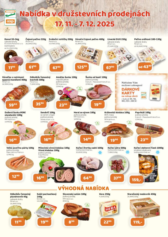 Nabídka v družstevních prodejnách platná od 17.11. do 7.12.2025.