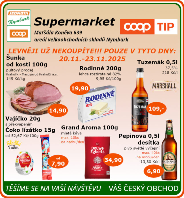 SUPERMARKET Maršála Koněva 639, Nymburk platnost od 20.11. do 23.11.2025 11.11.2025 / Renata Hervertová