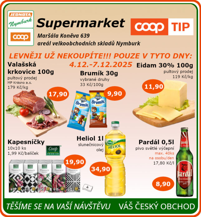 SUPERMARKET Maršála Koněva 639, Nymburk platnost od 4.12. do 7.12.2025