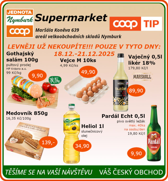 SUPERMARKET Maršála Koněva 639, Nymburk platnost od 18.12. do 21.12.2025 19.12.2025 / Renata Hervertová