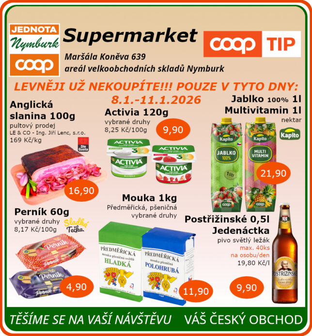 SUPERMARKET Maršála Koněva 639, Nymburk platnost od 8.1. do 11.1.2026
