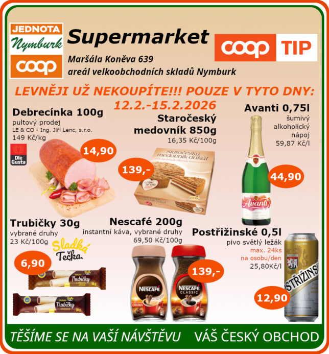 SUPERMARKET Maršála Koněva 639, Nymburk platnost od 12.2. do 15.2.2026