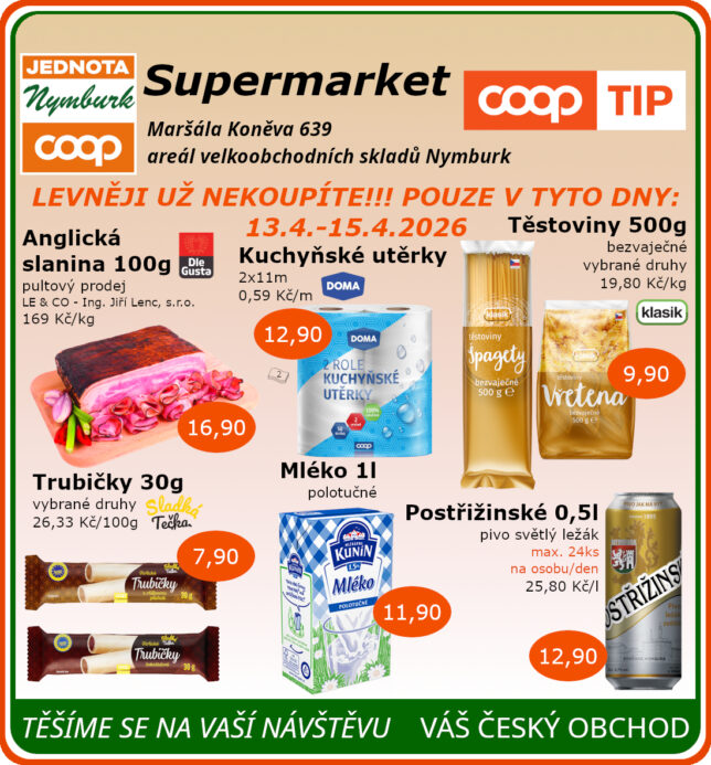 SUPERMARKET Maršála Koněva 639, Nymburk platnost od 13.4. do 15.4.2026