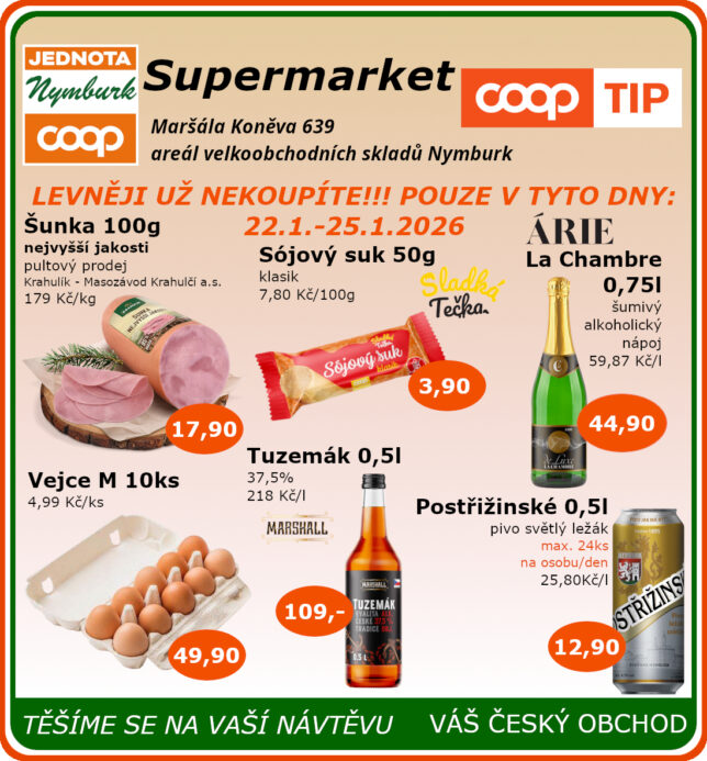 SUPERMARKET Maršála Koněva 639, Nymburk platnost od 22.1. do 25.1.2026 23.1.2026 autor: Renata Hervertová