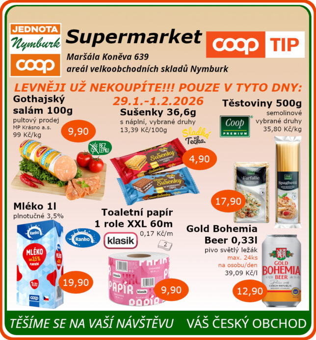 SUPERMARKET Maršála Koněva 639, Nymburk platnost od 29.1. do 1.2.2026