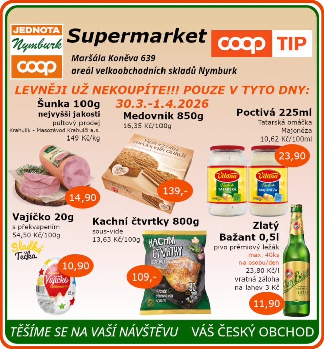 • SUPERMARKET Maršála Koněva 639, Nymburk platnost od 30.3. do 1.4.2026 13.3.2026