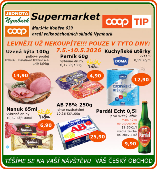 SUPERMARKET Maršála Koněva 639, Nymburk platnost od 7.5. do 10.5.2026